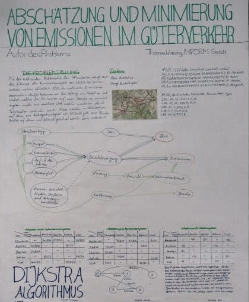 Zusammen mit Schüler*innen aus Aachen tüftelten sie in Gruppen zu je sechs Personen an Problemstellungen aus Industrie und Forschung. Bei der CAMMP week Modellierungswoche forschen Schüler*innen der Oberstufe in Teams an aktuellen Fragestellungen aus der Industrie und Forschung. Die Themen waren dabei vielfältig und reichten von der Optimierung im Sterilisationsprozess von medizinischen Geräten, über die Datenanalyse in Tropfsteinhöhlen bis zur Schätzung und Verminderung von CO2 -Emissionen im Güterverkehr.