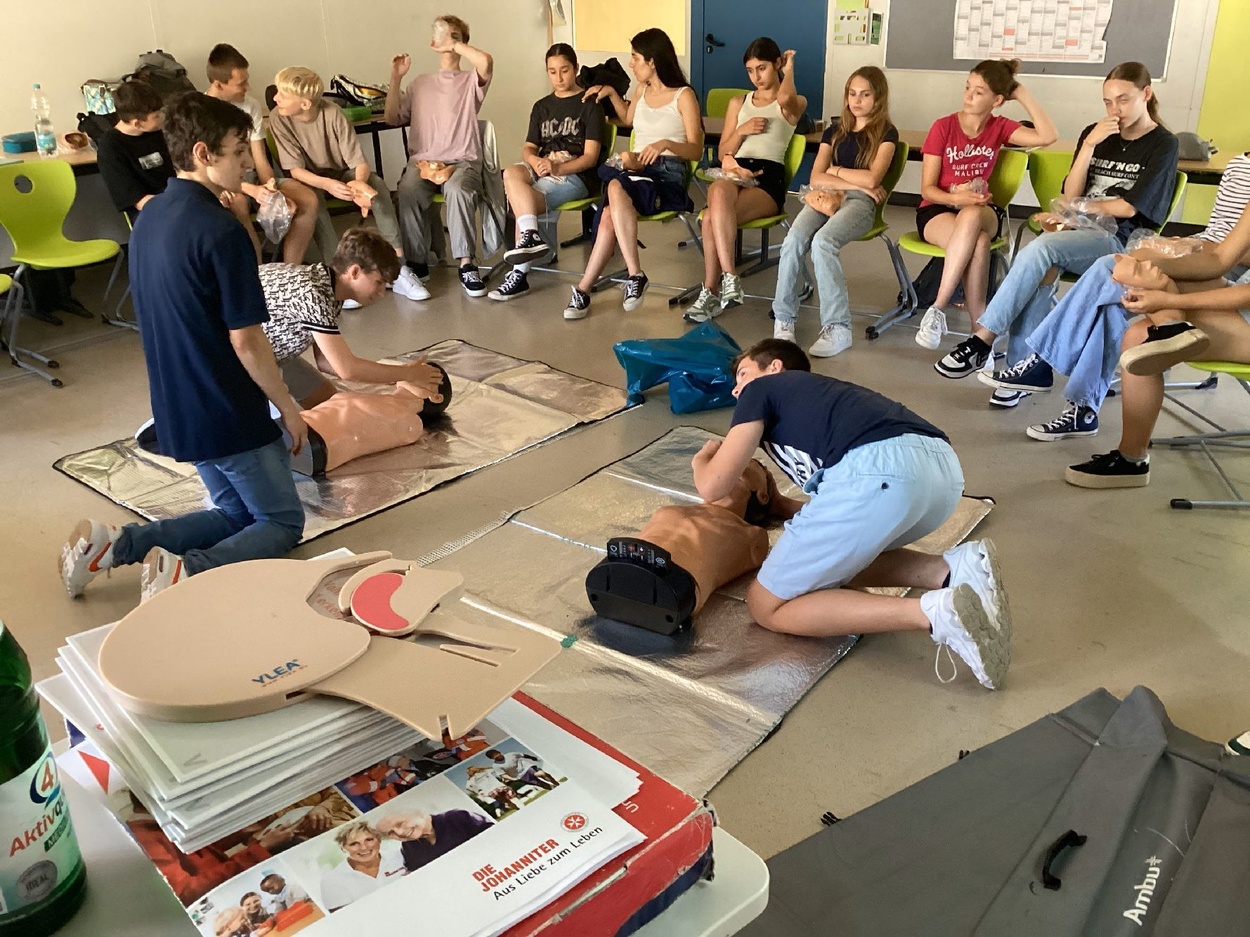 Am 20.06.2023 haben die 8. Klassen des Bergstraßen-Gymnasiums Hemsbach einen aufregenden Erste-Hilfe-Kurs erlebt. Durch Unterstützung des Fördervereins, bei dem sich an dieser Stelle alle Beteiligten ganz herzlich bedanken, konnte dieser Kurs kostengünstig angeboten werden.