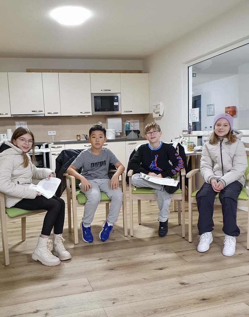 Dies nahm die 6c des Bergstraßen-Gymnasiums zum Anlass, eine Brücke zwischen Jung und Alt zu schlagen. Sie stattete mit ihren Lehrerinnen Frau Striesow und Frau Dunz den BewohnerInnen des Seniorenzentrums Schneider in Hemsbach einen Besuch ab und las ihnen kaukasische Märchen vor.
