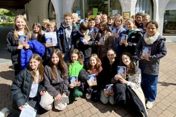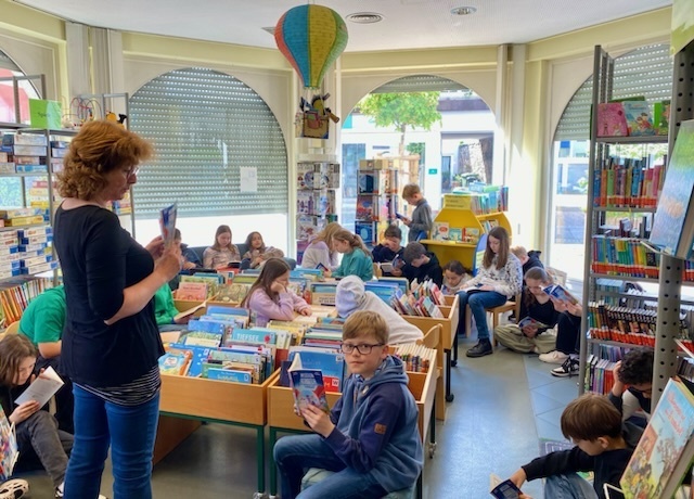 Am 23. April fand zum 27. Mal der Welttag des Buches statt. Die 5. Klassen des Bergstraßen-Gymnasium nutzten den Tag für einen Ausflug in die Katholisch Öffentliche Bücherei in Hemsbach. Dort erhielten sie den neuen Comicroman „Mission Roboter - Ein spannender Fall für die Glücksagentur“, aus dem Frau Hupach das erste Kapitel vorlas.