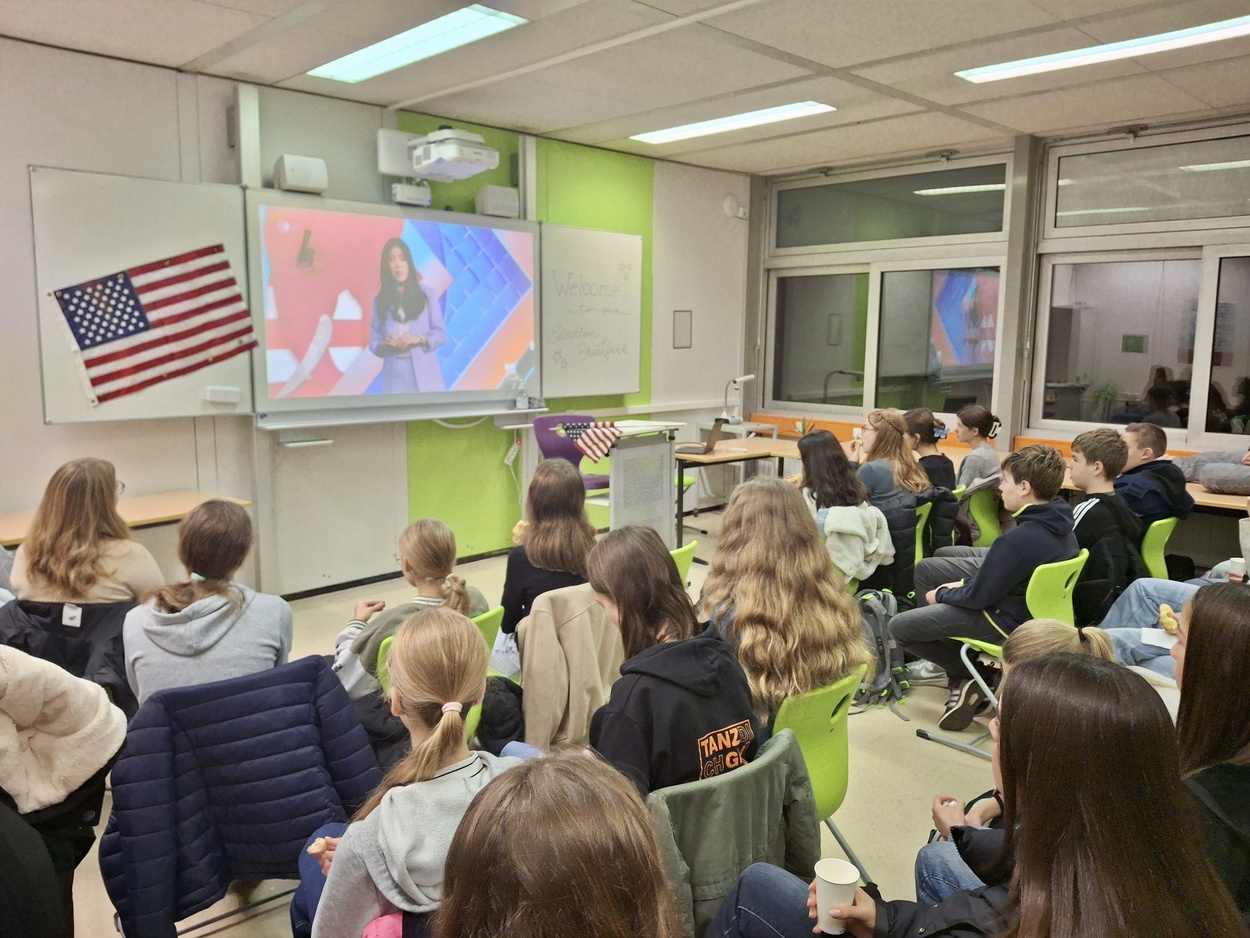 Bei Bagels, Muffins und Orangensaft starteten die Schüle*innen und Lehkräfte gemeinsam in den Morgen nach der Wahl. Zunächst wurde erkundet, wie das Wahlsystem in den USA funktioniert und die Frage behandelt, warum diese Wahl nicht nur für die USA, sondern auch für uns in Deutschland und die Demokratie von Bedeutung ist. Anschließend wurden die Wahlergebnisse eingeordnet und neue Auszählungsergebnisse besprochen. Im weiteren Verlauf wurde die Berichterstattung über die Wahlergebnisse in den USA in den Fokus genommen und die verschiedenen Arten der Berichterstattung, je nach Quelle bzw. Fernsehsender, miteinander verglichen.