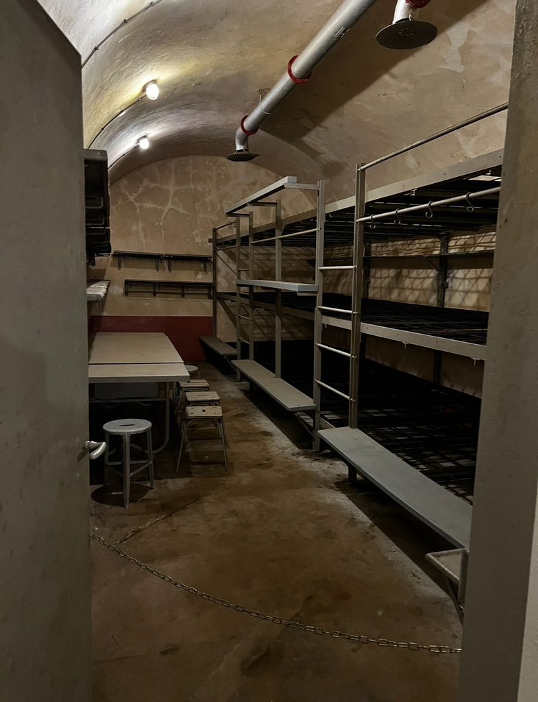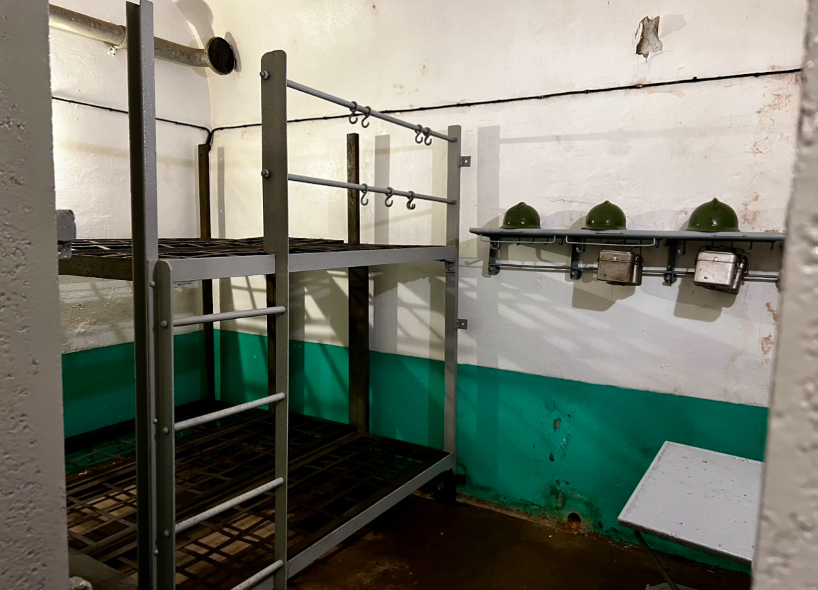 Los ging es am Mittwoch, dem 6.11.24, um 8 Uhr. 70 SchülerInnen machten sich gemeinsam mit den drei Geschichtslehrkräften Frau Börgardts, Herrn Baumgärtner und Herrn Weber von Hemsbach auf ins Elsass. Erste Station war das kleine Örtchen Schoenenbourg, in dessen Nähe sich ein Einstieg in die Maginot-Linie befindet. 35 Meter ging es über fast 200 Treppen in die Tiefe. Nasskalte Luft empfing die Besuchergruppen. Über drei Kilometer sollte es nun zu Fuß durch das insgesamt über 700 Km lange französische Bunkersystem gehen. Es erstreckt sich über die Grenzen zu Belgien, Luxemburg und Deutschland bis hinunter nach Italien. In den Boden hinein hatten die Franzosen über sechs Jahre hinweg für insgesamt 5 Milliarden Franc unterirdische Tunnel, zum Teil mit Schienen für Loren, Schlafsäle, Kommandostände, Kantinen, Poststellen, Behandlungsräume und natürlich Gefechtsstände mit Kanonen gelegt. Zwei Stunden lang wurden die drei 9. Klassen durch das konstant 12 Grad kalte Bauwerk geführt. Was auch vollkommen ausreichte, um das Gefühl, ohne Tageslicht unter der Erde zu sein, und die Angst nachvollziehen zu können, die die Franzosen nach drei Kriegen gegen die Deutschen empfunden haben mussten. Unvorstellbar, dass die stationierten Soldaten hier drei Monate am Stück verbringen mussten.