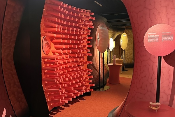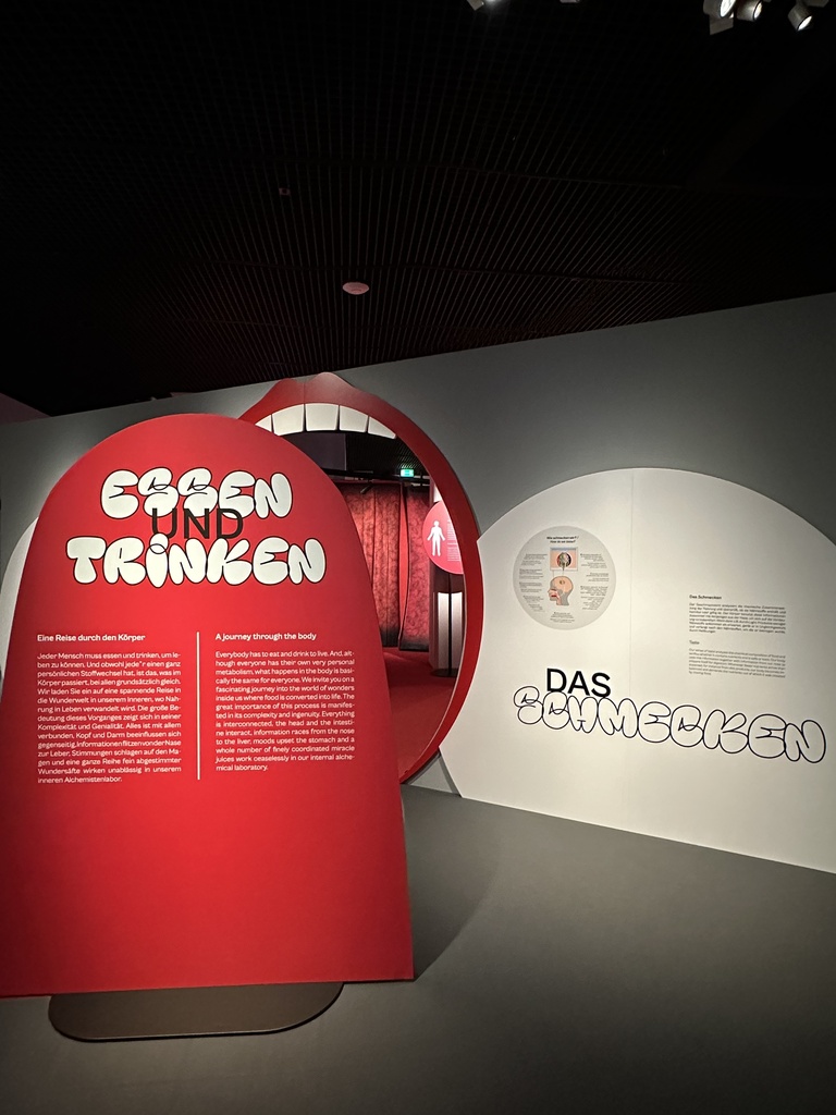 Bereits vor der Aufnahme von Lebensmitteln in unseren Mund spielen unsere Sinne eine entscheidende Rolle. An einer der vielen Mitmach-Bereiche und Themeninseln, welche die die interaktive Ausstellung zu bieten hat, kann man testen, ob man anhand der Geruchstoffe Lebensmittel erkennt und sie als lecker einstuft oder nicht. Auch die Konsistenz und das Aussehen spielen eine wichtige Rolle bei der Wahrnehmung von Nahrung. So wird gezeigt, wie bedeutend die Lichtfarbe ist, mit der Lebensmittel bestrahlt werden - ein Prinzip, das Supermärkte nutzen, um ihre Lebensmittel optimal zu präsentieren.