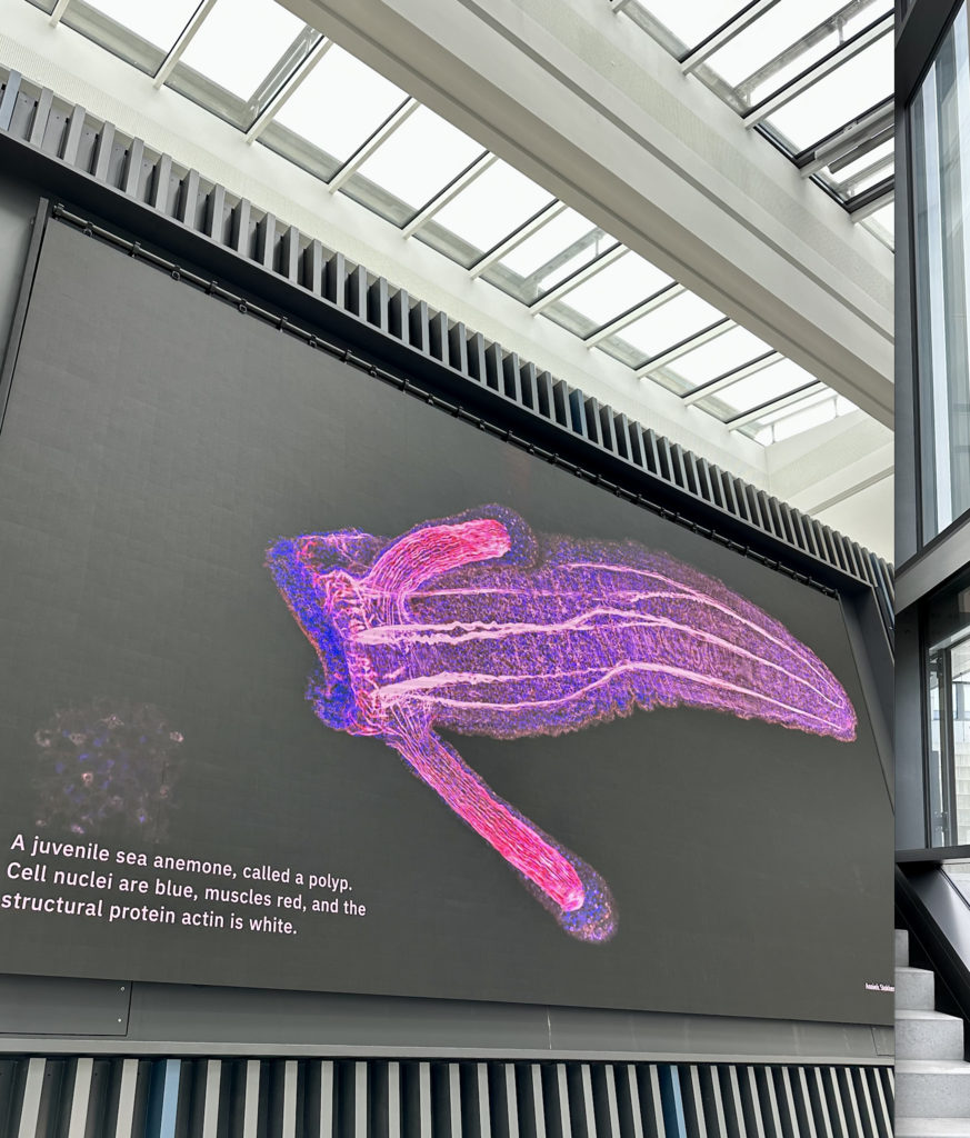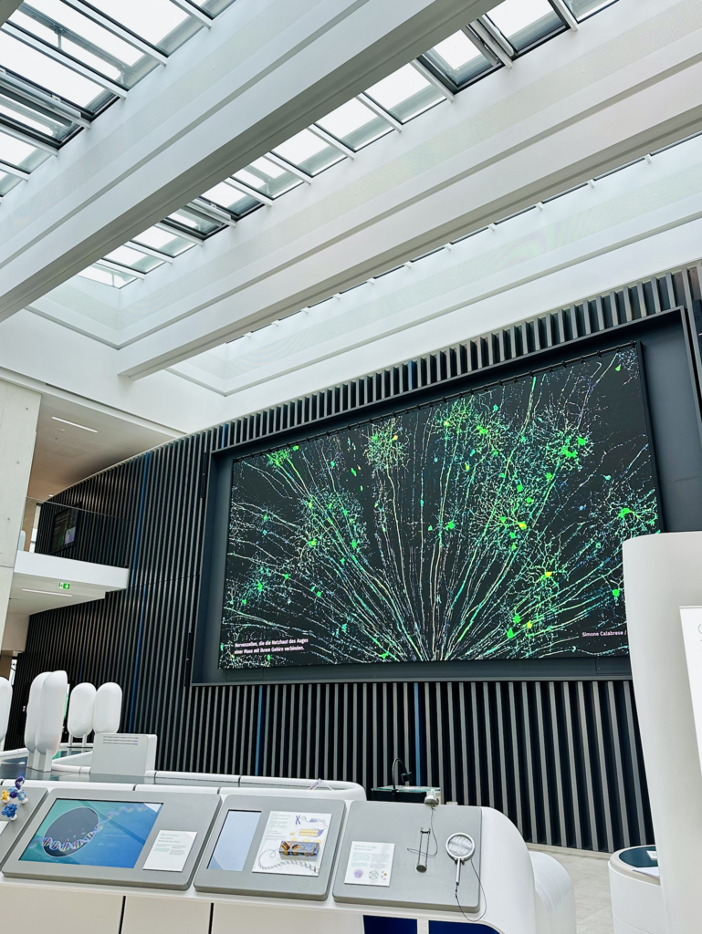 Die Schüler*innen waren beeindruckt von der Ausstellung. Sie konnten einerseits ihr biologisches Wissen auffrischen und dieses mit Themen aus der Praxis verbinden, andererseits waren sie fasziniert von dem modernen Gebäude, den Ausstellungsobjekten und auch von dem Preis eines Elektronenmikroskops, das dort in einem geschützten Raum ausgestellt (und am Arbeiten) ist – es hat einen Preis von ca. 10. Millionen €, und im EMBL stehen drei solcher Mikroskope.