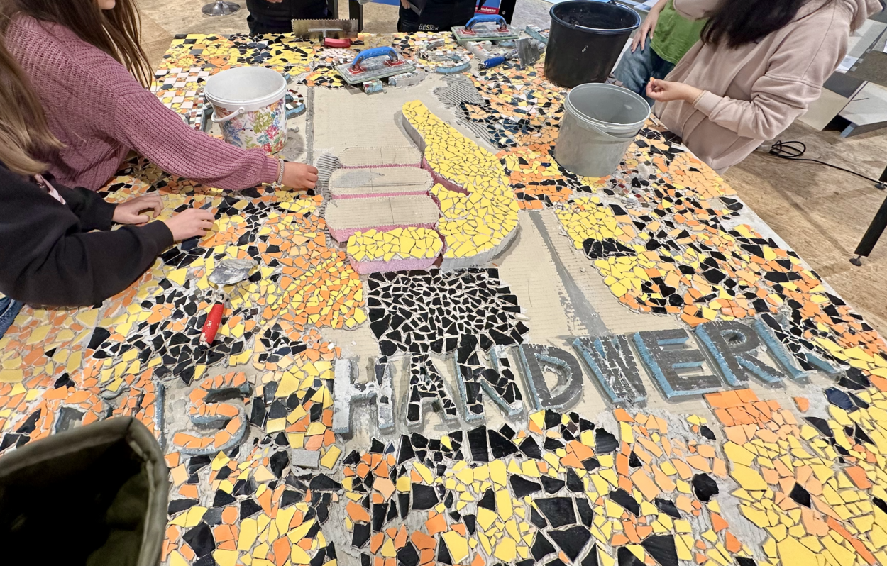 Bei den Lackierern z.B. konnten die Schüler*innen eine Sprayvorrichtung in die Hand nehmen und über eine Virtual-Reality-Brille verfolgen, was sie da gerade in welcher Qualität ansprühten. Auch die Innung des Dachdeckerhandwerks lockte mit eine VR-Brille, durch welche man das Gefühl nachempfinden konnte, auf einem kleinen Gerüstvorsprung in Höhe eines Dachs zu stehen. Bei dieser Innung konnte man außerdem Schifferplatten in Form schlagen, so wie es früher auch für das Herstellen von Schifferziegeln gemacht wurde (inzwischen wird die Arbeit von Maschinen übernommen). Bei der Station der Bäckerei-Konditorei Edgar Seitz GmbH & Co. KG konnten die Schüler*innen praktisch arbeiten und einen Zopf auf Teig flechten. Bei dem Stand der Fliesenleger durften die Schüler*innen Fließen anbringen, so dass ein schönes Mosaik entstand, welches in einem Betrieb ausgestellt werden wird. Auch in die Berufe Schreiner/ Tischler, Elektroniker, Schornsteinfeger und vielen mehr bekamen die Schüler*innen Einblicke.