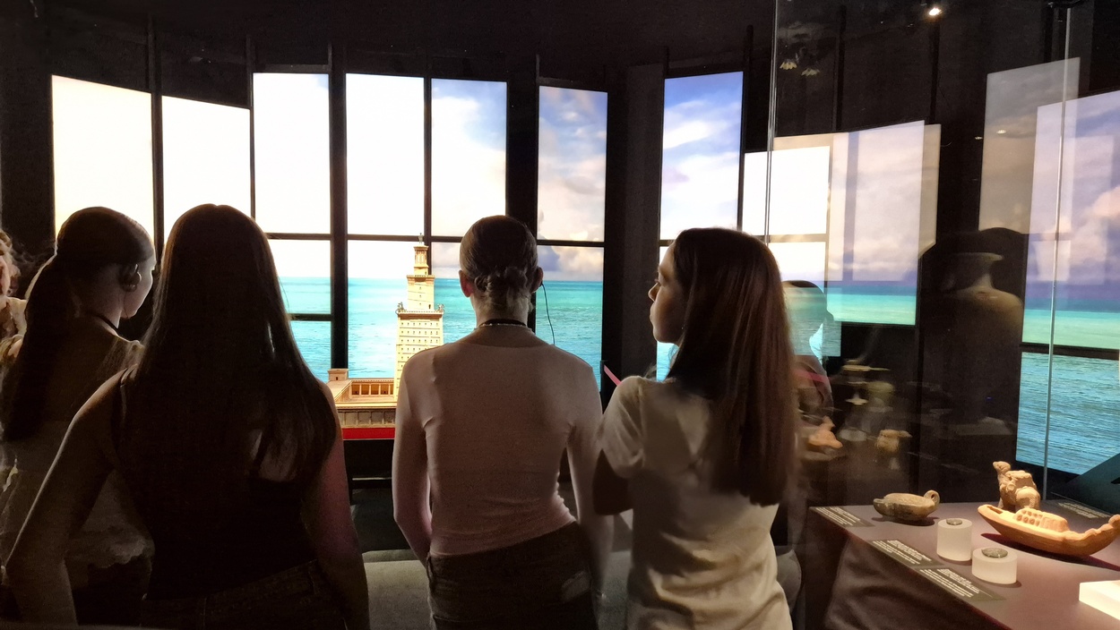 Bei einer kurzweiligen Führung beschäftigten sich die Schüler*innen mit dem Verhältnis von Mythos und Realität, von Liebe und politischem Kalkül sowie vom Untergang der einen und dem Aufstieg der anderen Weltordnung. Dabei konnten zahlreiche Exponate bestaunt werden, darunter seltene Leihgaben aus dem Pariser Louvre und den Kapitolinischen Museen Roms. Erlebbar wurde die Geschichte auch durch aufwendige virtuelle Rekonstruktionen.