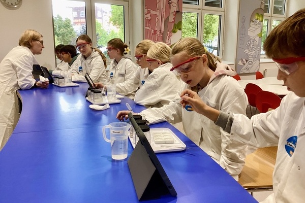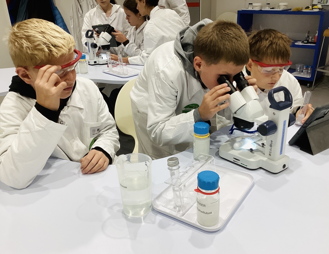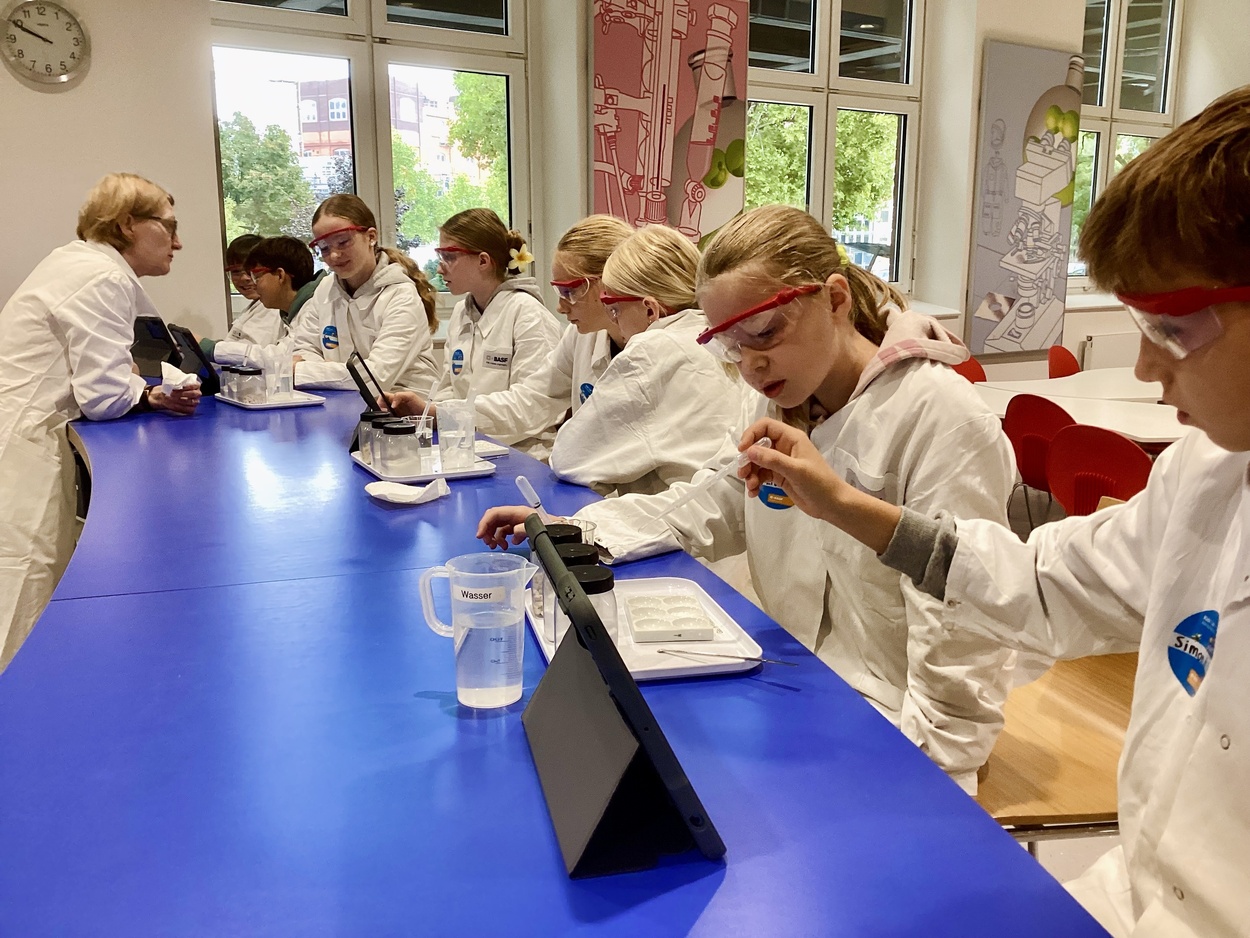 Nachdem wir am Besucherzentrum freundlich empfangen worden waren, wurden wir nach einer kurzen Einweisung in drei verschiedene Gruppen eingeteilt. Jede dieser Gruppen untersuchte ein anderes Thema, wie zum Beispiel das CO2-Lab, das Kunststoff-Lab und das Schaum-Lab. Innerhalb der verschiedenen Labore wurden in Gruppen Experimente bearbeitet, die Ergebnisse dokumentiert und abschließend in einem kurzen Vortrag dem Rest der Klasse präsentiert. Dabei kamen I-Pads zum Einsatz, was großen Spaß gemacht hat und sehr aufregend war.