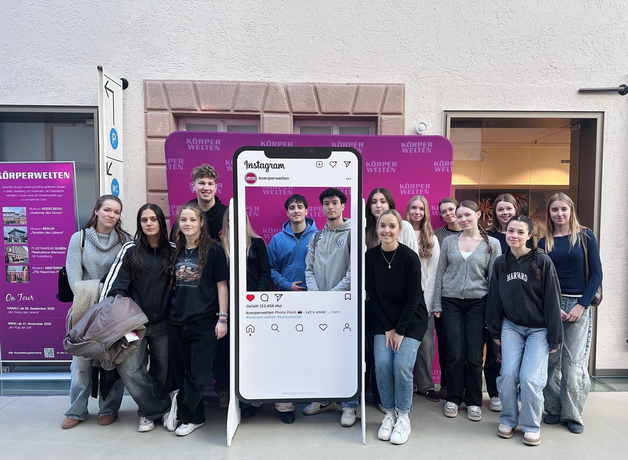Am 05.02.2026 unternahm der Biologie-Basiskurs von Frau Ehrhard eine Exkursion nach Heidelberg, um die Körperwelten-Ausstellung zu besuchen. Die Exkursion knüpfte inhaltlich an das im Unterricht zuvor behandelte Thema Evolution an und bot zugleich eine inhaltliche Vorbereitung auf das bald folgende Thema Hormone sowie deren Bedeutung für Glück, Verhalten und evolutionäre Prozesse.