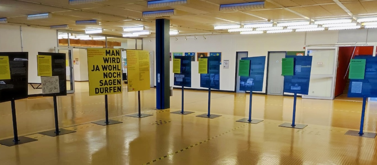 Anlässlich dieses Gedenktages zeigte das Bergstraßen- Gymnasium vom 10.-28.10. im Foyer die Ausstellung »Man wird wohl noch sagen dürfen« des Dokumentationszentrums Oberer Kuhberg in Ulm. In und mit dieser Ausstellung lernten unsere Schülerinnen und Schüler im Rahmen des Geschichts- oder Gemeinschaftskundeunterrichts die Ursprünge verschiedener Begriffe und Redensarten, die durch ihre nationalsozialistische Vergangenheit geprägt sind, kennen. Die Schüler*innen führten lebhafte Diskussionen, wie mit solchen Begriffen umgegangen werden kann und sollte und welche Rolle demokratiefeindliche Sprache in der gegenwärtigen Welt mit ihren vielen Krisen spielt.