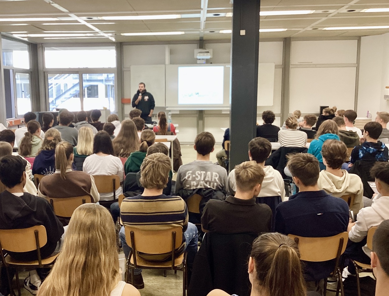 Einen ganz speziellen Einblick in diese Thematik erhielten die Schüler*innen der Kurstufe von Burak Yilmaz, der am 17.10. einen Vortrag an der Schule hielt und mit den Schüler*innen in den Dialog trat über ihre Erfahrungen und mögliche Handlungsweisen im Kontext von Antisemitismus und Rassismus.