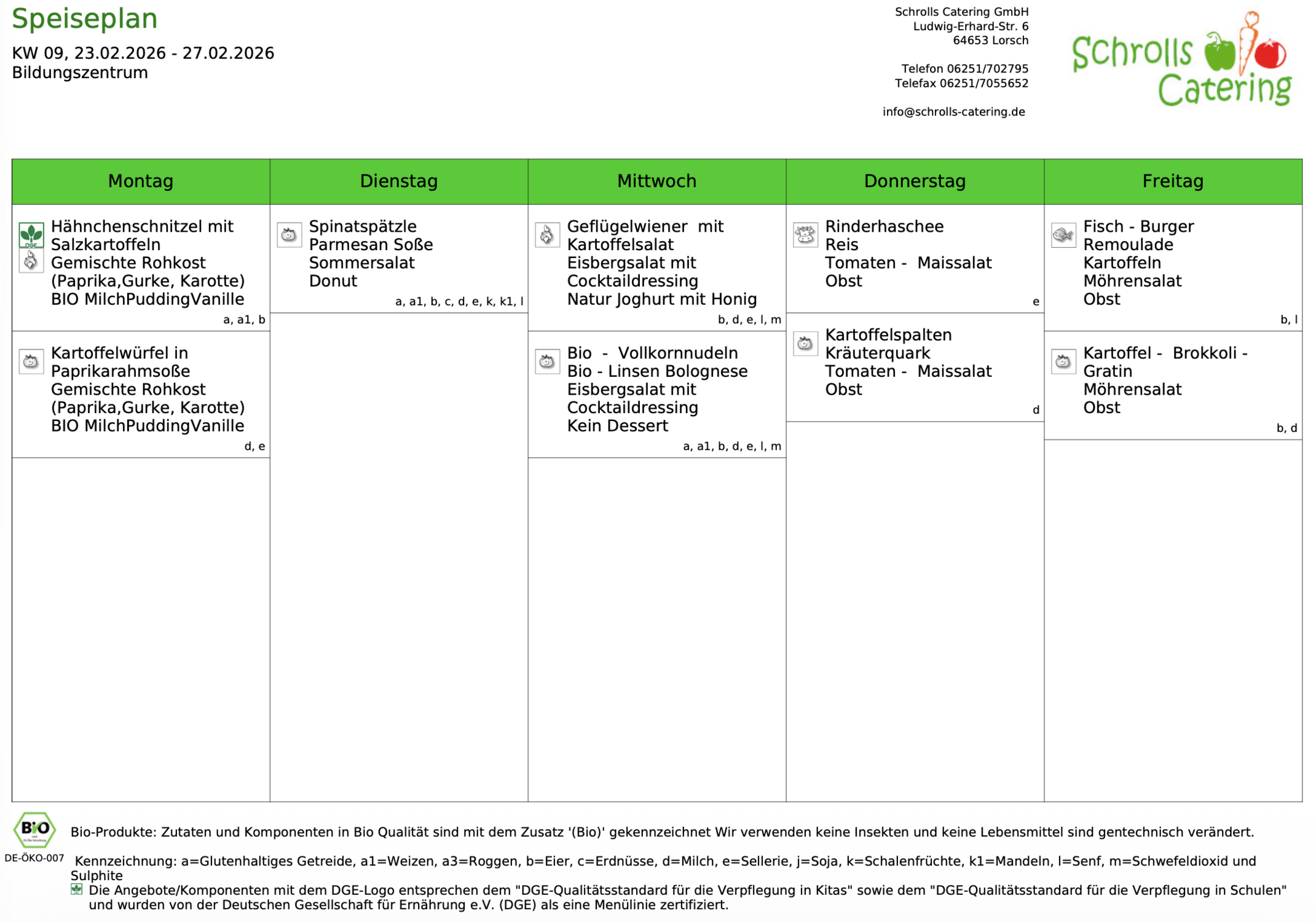 Über den Schulträger kann man sich für das warme Mittagessen anmelden. In der großen Pause findet der Bäckerverkauf statt.
